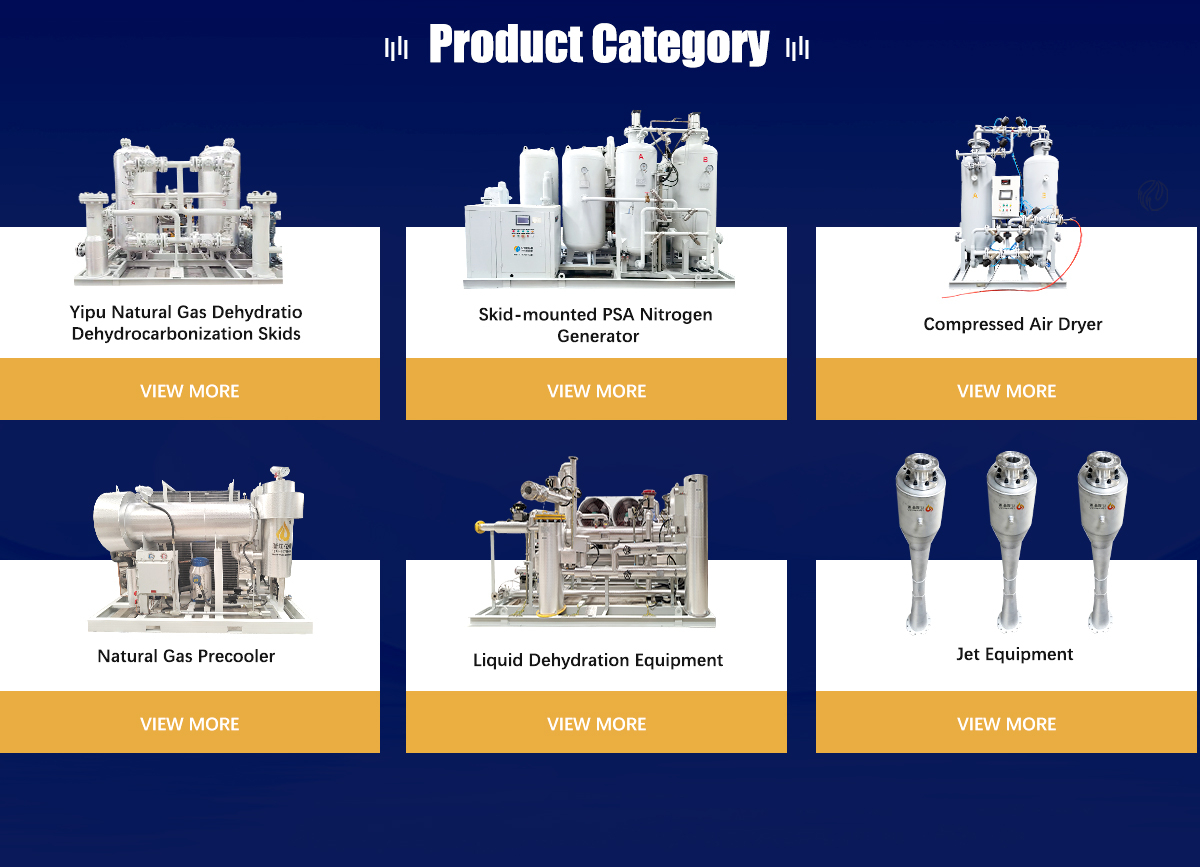 Productos principales:Unidad de secado de gas natural, secador de refrigeración, generadores de nitrógeno, eyectores de vapor, tamiz molecular